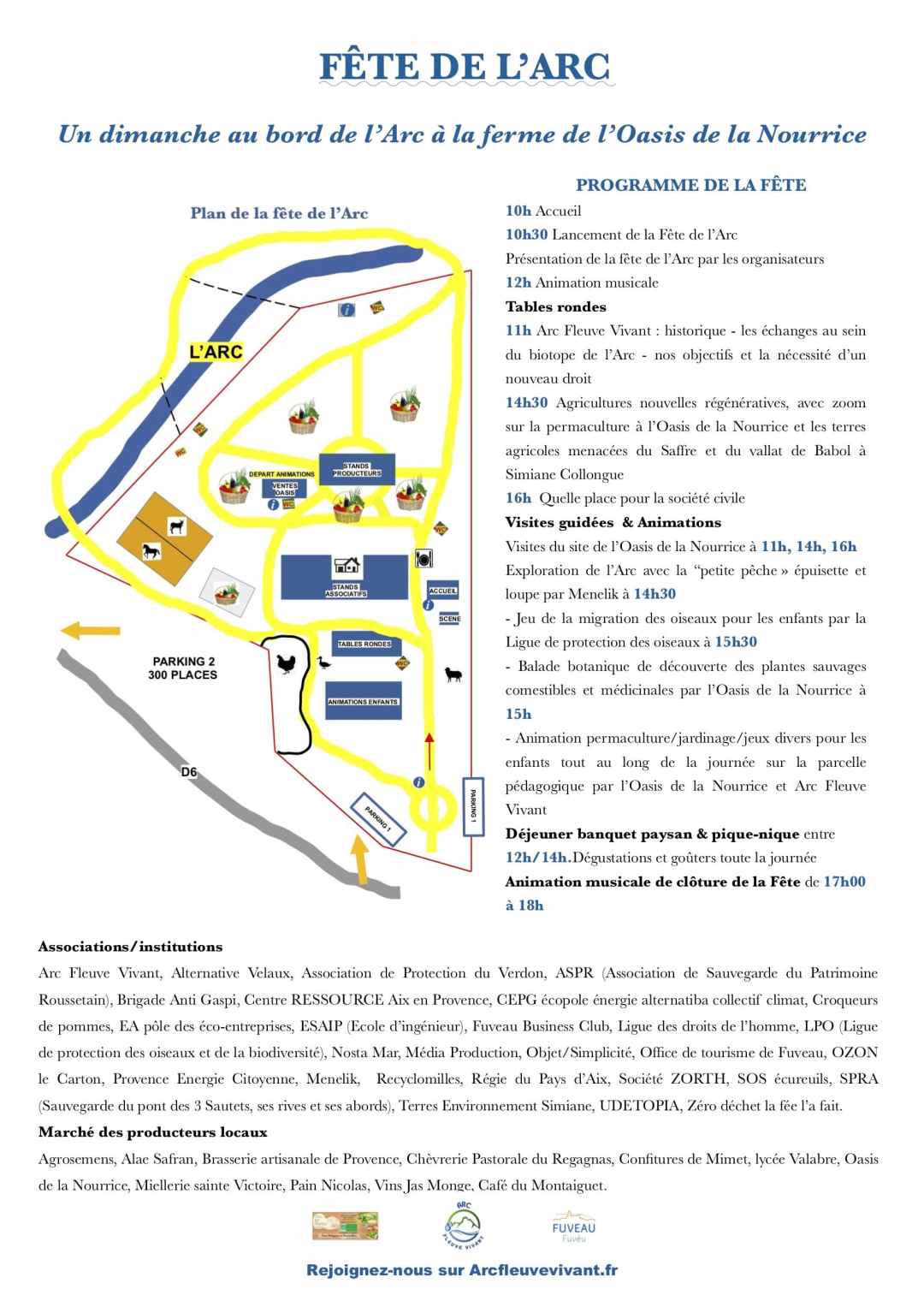 Pour sa première édition, dimanche 16 juin, la Fête de l’Arc, organisée par l’association Arc Fleuve Vivant, en partenariat avec la ferme de l’Oasis de la Nourrice à Fuveau et la commune de Fuveau, met les petits plats dans les grands, avec un programme riche en animations et en intervenants pour permettre à tous de mieux connaître et protéger le bassin versant de l’Arc, sa flore, sa faune, ses terres agricoles, la nature et de passer une journée festive.