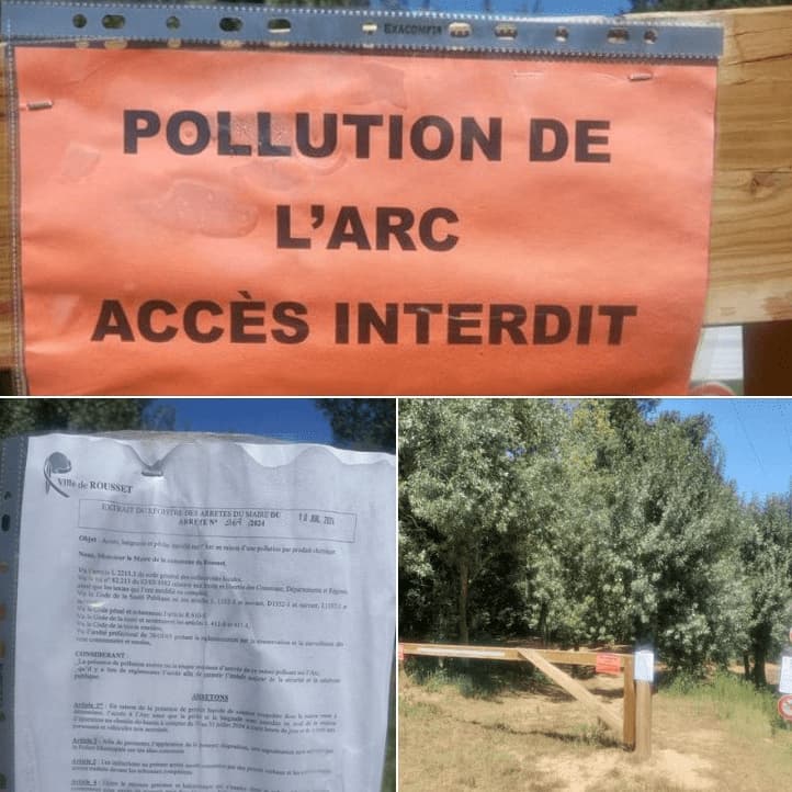 Un prélèvement et une analyse de l’eau de l’Arc sur la zone concernée à Rousset, réalisé par un spécialiste de notre association, ont révélé une pollution aux nitrates, nitrites, benzènes, antibiotiques, micro-plastiques dans des concentrations astronomiques et plus aucun micro-organisme vivant. Dans le cas du Longarié, il a été déclaré à un des membres de notre association que ce ruisseau n’est pas répertorié, donc que personne n’en est en charge et qu’aucune autorité ne peut agir.