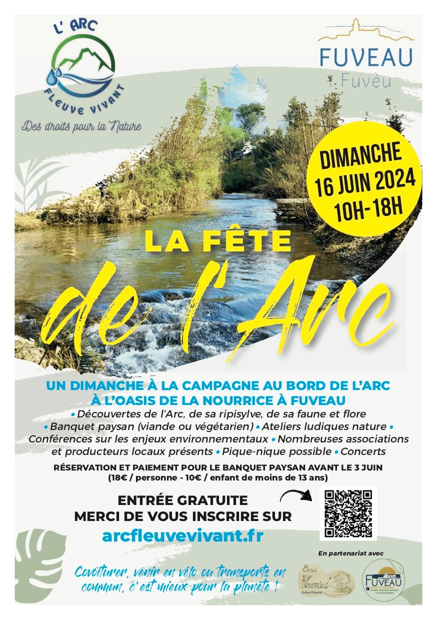 Pour sa première édition, dimanche 16 juin, la Fête de l’Arc, organisée par l’association Arc Fleuve Vivant, en partenariat avec la ferme de l’Oasis de la Nourrice à Fuveau et la commune de Fuveau, met les petits plats dans les grands, avec un programme riche en animations et en intervenants pour permettre à tous de mieux connaître et protéger le bassin versant de l’Arc, sa flore, sa faune, ses terres agricoles, la nature et de passer une journée festive.