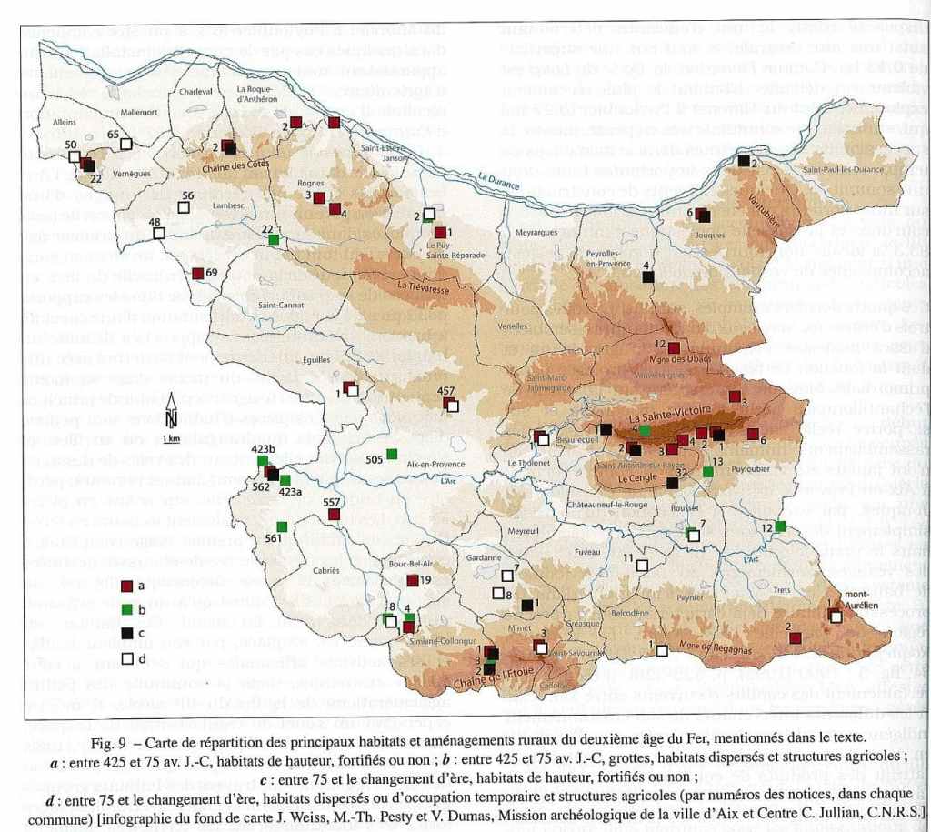 D’Anna André, Leveau Philippe, Mocci Florence. « La montagne Sainte-Victoire de la Préhistoire à la fin de l’Antiquité : les rythmes de l’occupation humaine (prospection-inventaire 1989-1992)« . In: Revue archéologique de Narbonnaise, tome 25, 1992. pp. 265-299.